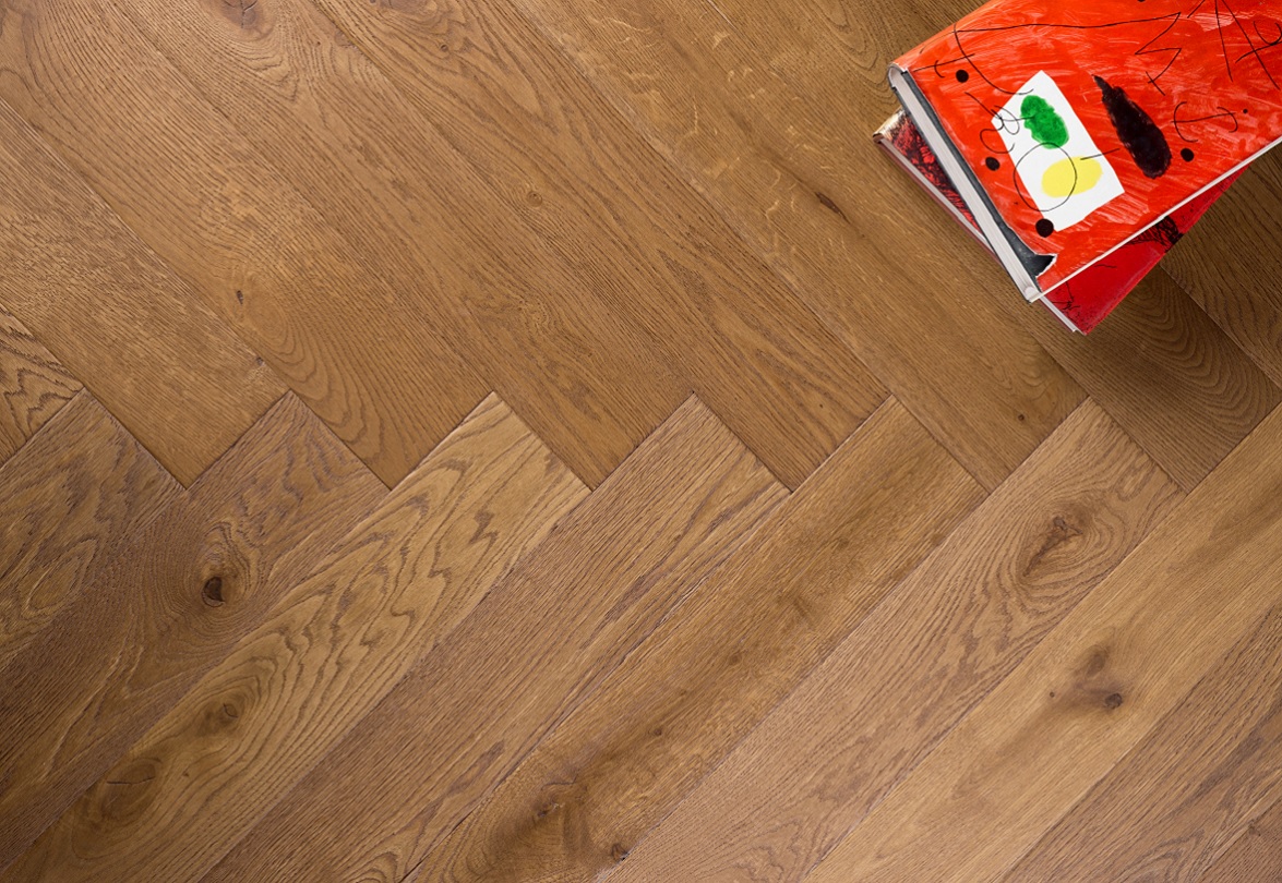 floor. Our deep smoked Hampton Oak Colour no. 8 Herringbone aged oak flooring is like the brooding older brother