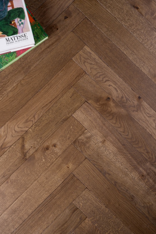This engineered oak herringbone wood flooring has individually distressed & tumbled edges and fits together via tongue & groove. More installation information can be found under the specification tab.