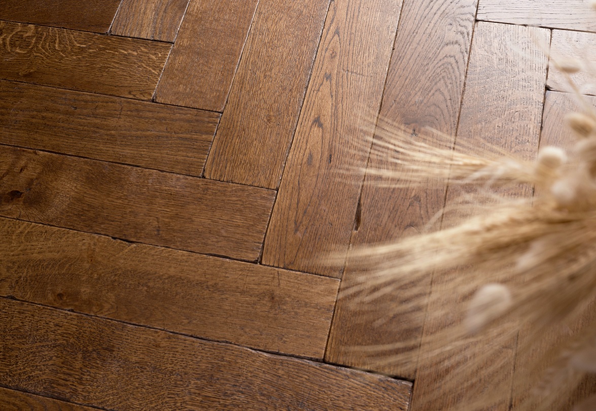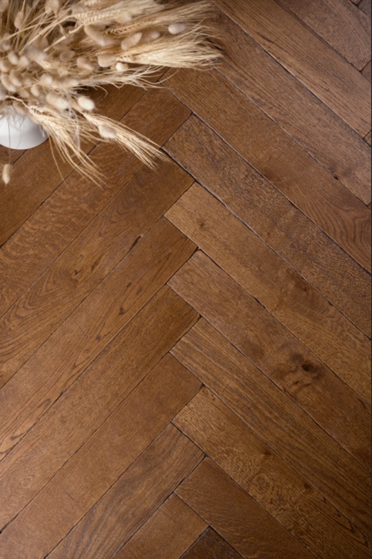 Pragvel Tumbled Herringbone is a gorgeous wenge coloured wood floor presented in a stunning format making it eminently suitable for both large and small areas of the home. The oak is deep smoked, a process that changes the raw oak into a dark oak colour with lovely variation between each individual plank. This smoking along with artisanal hand-working and a unique tumbling technique all combine to create superb, time-worn oak floor packed with charisma & depth.