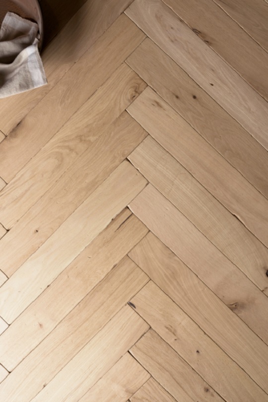 This gorgeous oak herringbone floor has been brushed and antiqued to reveal the natural characteristics of the stunning natural grade timber which includes various tones, knots and grains. It has then been finished with a robust UV oil to not only give this lovely herringbone floor the much in demand ‘unfinished’ or untreated raw pale oak colour but also add strength and longevity. Boasting lovely natural pale oak hues ranging from warm ivory through eggshell & cream and onto light latte, this light oak herringbone parquet is a stunning floor – full of flair, character & style. This floor is perfect for that adult haven hide-away, be it a romantic snug or a large living room. Surrey tumbled herringbone makes a grand statement in libraries, reading rooms and studies where a touch of grandeur goes a long way. Due to the modernity of the board size, this Herringbone floor can certainly be used in contemporary schemes or to introduce a progressive touch into older refurbishments.  Plank size is 60cm (L) x 10cm (W) x 2cm (D) - (600mm x 100mm x 20mm).